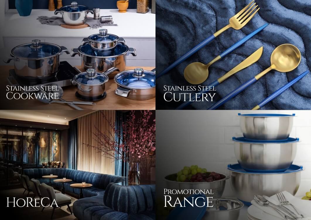 To be a 360 degree service provider of Houseware & Kitchenware products in Stainless Steel, Plastics, Aluminium, Thermo Ware & Glasswares